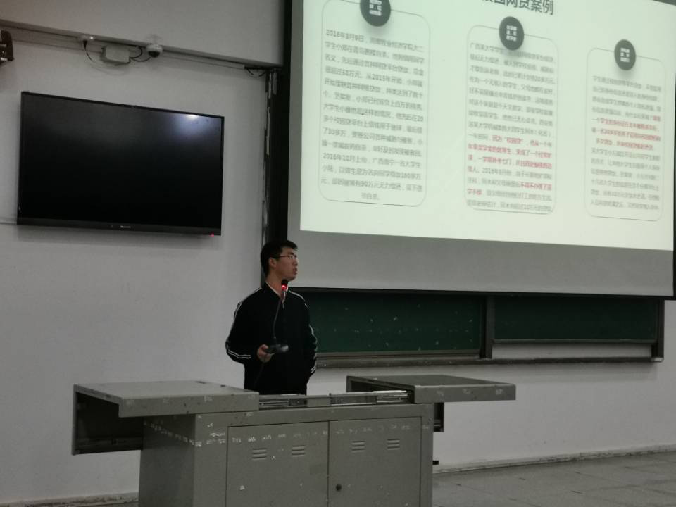 接下来,由刘少文老师进行网络与国家公共安全教育这一主题讲座,刘老师从校园网贷、网络诈骗和公共安全三个方面进行讲解,结合现实生活中的真实案例向同学们指出大学生活中的常见诈骗手段,希望大家提高安全防范意识,保护好个人财产全。