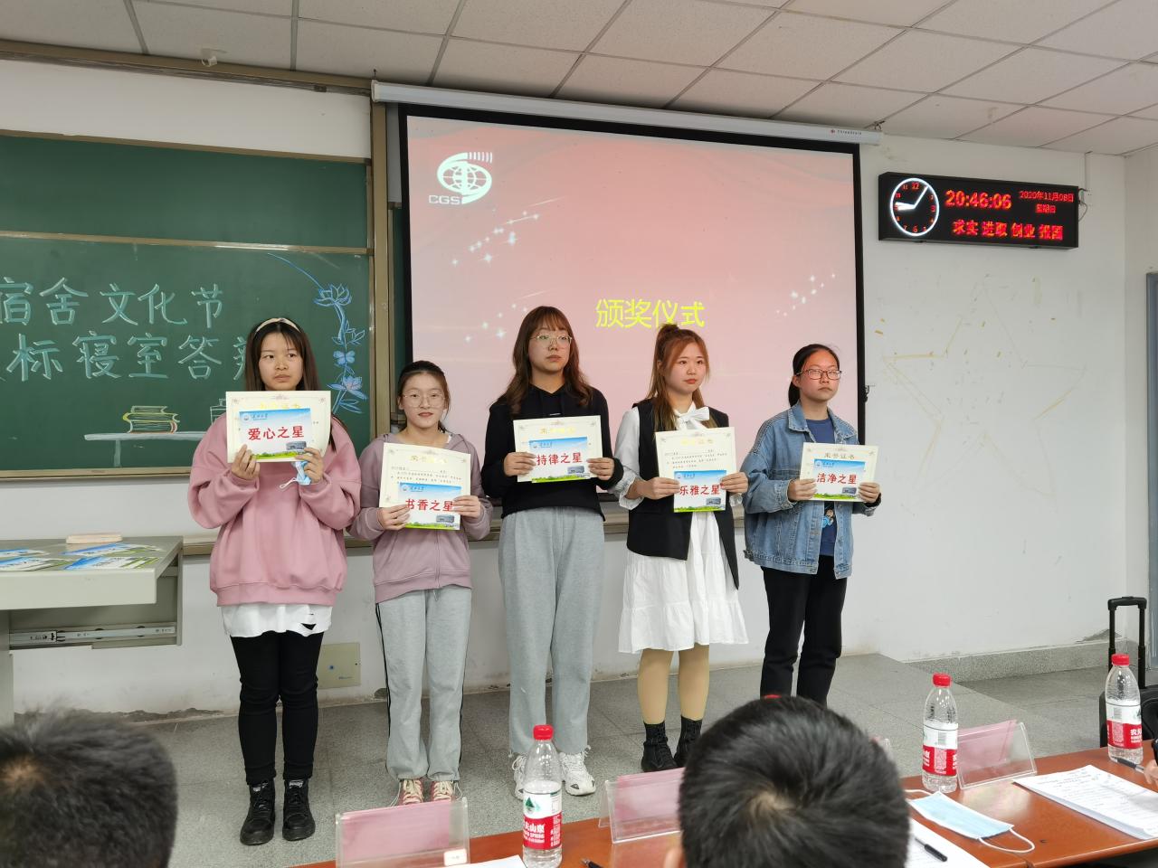 经过精彩的展示和紧张的投票环节,最终五个星标寝室脱颖而出。它们分别是:洁净之星—校内四栋207;爱心之星—校内四栋305;书香之星—校内四栋208;乐雅之星—校内四栋343;持律之星—校内四栋201。