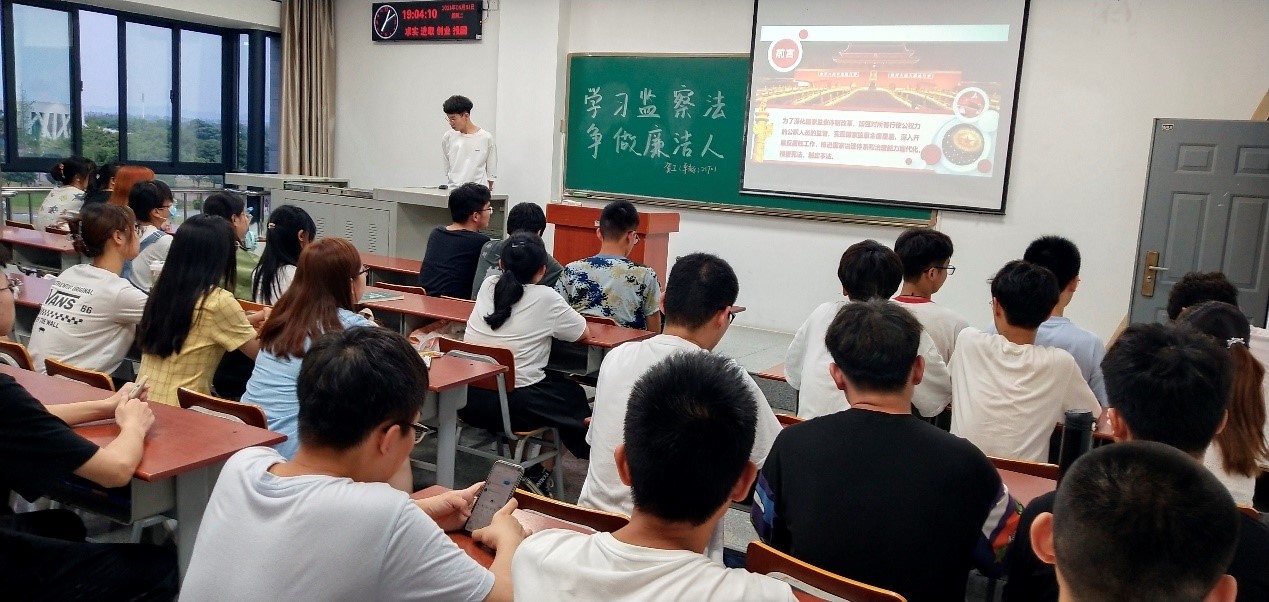 在后续的互动环节中,同学们纷纷发表自己的看法。地信21701班的同学认为该法案的出台对我国的反腐败工作及监察体制的完善是里程碑的作用,将会使政府工作更加规范。资工(卓越)21701班的同学认为,对于他们这些即将毕业的学生来说,这次对监察法的学习,更是在提醒自己在未来的工作中要严以律己,不忘初心,做一个有价值的人。地质21701班的同学也发表自己的见解,觉得通过这次学习,让他们觉得在今后的生活及工作中,要树立良好的世界观,价值观,人生观,做有底线,懂奉献的新青年。