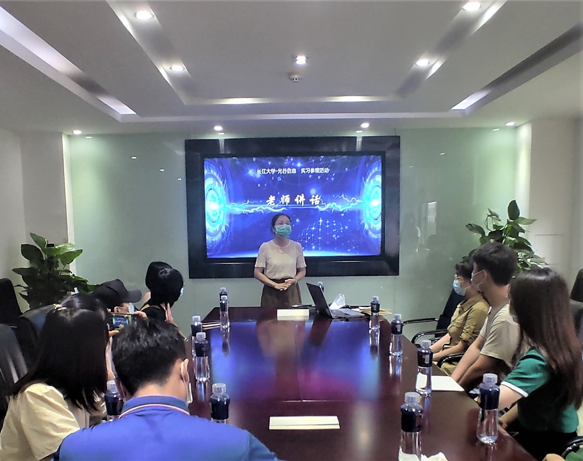 参观完整洁的办公环境,同学们一起来到了四楼会议室。郭霖老师首先对光谷信息提供的机会表示感谢,并为公司良好的企业氛围和办公环境点赞;她希望同学们借助今天这个机会,带着专业的疑问和对未来规划的思考用心地来进行交流。接着,她提出了同学们要实现三个转变:“第一是要实现从学校学习的知识到和实践相结合的转变,要能够理论联系实际;第二是要实现从学生到职业人的转变,尽快改变观念去适应工作;第三是要实现从一个普通公民到社会人的转变,承担起自己的社会责任。”她寄语:“同学们要把自己的命运和国家联系到一起,要立大志、长志,争取为学校、为行业、为祖国增光添彩。”