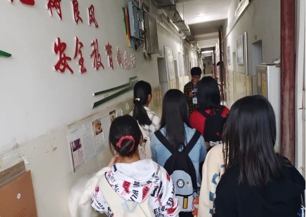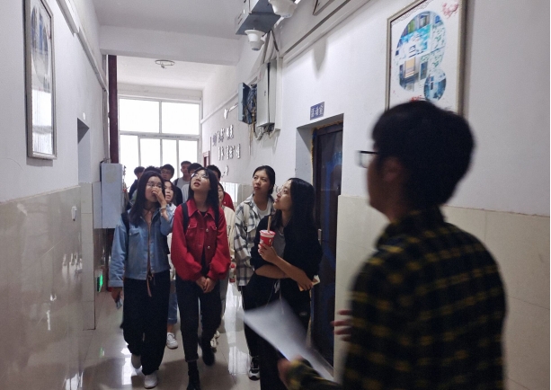 华林公寓9栋自一至六楼在走廊墙面设计了不同主题的展板:一楼“地学知识”,主要通过图片简介常见地形地貌、岩石、矿物等专业知识;二楼“安全教育”,包括吃住行、盗水火、毒艾恐、坛心网12项安全须知。近期气温骤降,导游们特别强调了宿舍用电安全问题,以典型事例警示同学们,提高了防火安全意识和自护自救能力。同时,考虑电信诈骗现象屡禁不止,导游们还细心提醒大家在双十一期间,对“客服”等常见骗术保持警惕。