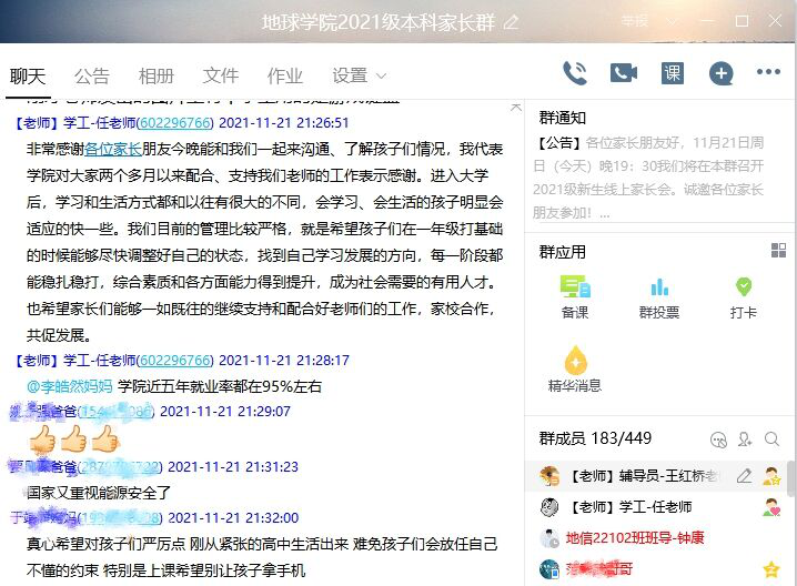 借助QQ群打造家校育人平台是色情影片 践行“三全育人”的重要举措,新生家长会也是色情影片 长期坚持的优良传统。通过让家长们全面了解学院、知晓孩子在大学的表现,增进学院和家长间的沟通和理解,形成家校联手的协同关系,共同助力学生成长成才。