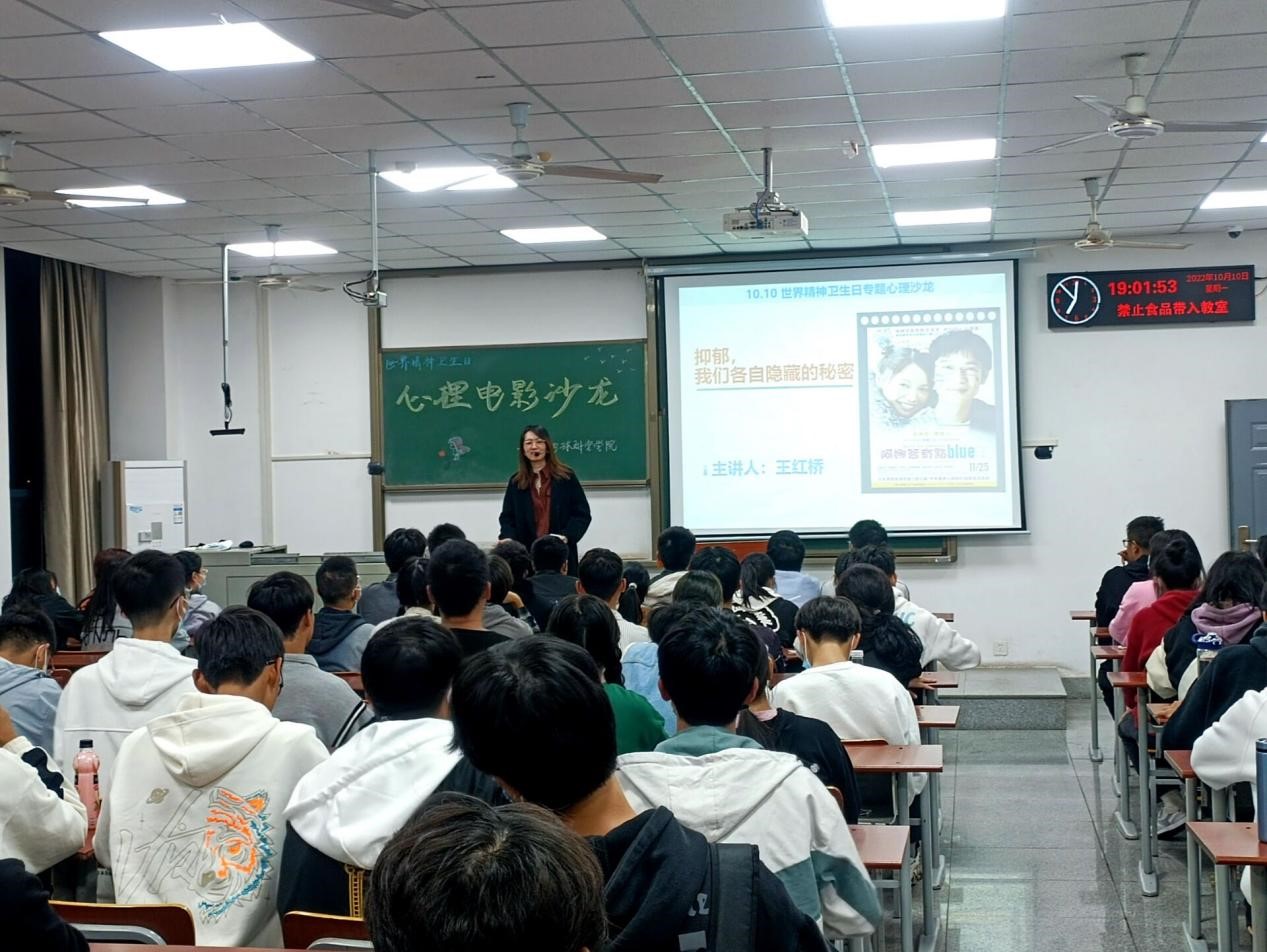 (通讯员 杜民意 李弘扬)在“世界精神卫生日”到来之际,为引导同学们重视情绪健康,2022年10月10日晚19:00,色情影片 学生会心育部在A210面向22级新生举办心理电影沙龙。活动共吸引110名新生参加,王红桥老师担任主讲,大家共同分享有关对抗抑郁症、爱与陪伴的电影——《丈夫得了抑郁症》。