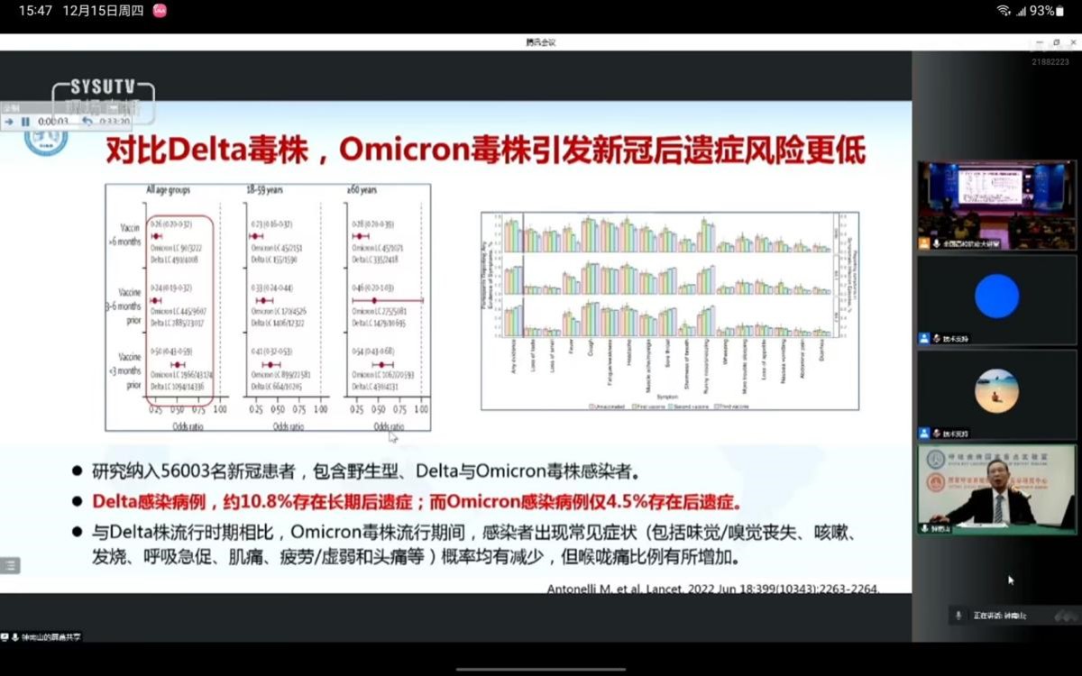 钟院士从两年多来抗疫取得的成就、全国范围第二波Omicron疫情的特点、Omicron的生物学特征和致病性及学生如何加强个人防护这四个方面进行了权威、科学的分享。