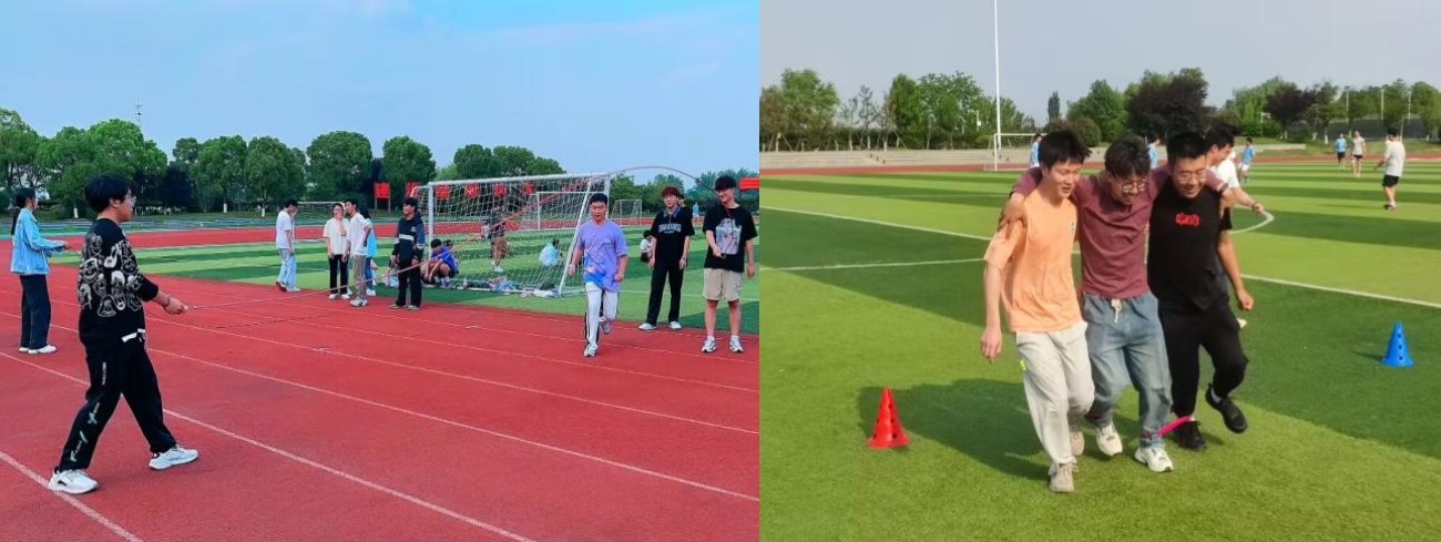而在三人四足和五人跳大绳需要团队协作的比赛中,每个人都变得更加团结地合作着,一步三人,步步为营,三个人口中一起喊着“一二一,一二一”的口号,完美地呈现出节奏和配合的默契。在跳大绳比赛中,五个人一个接一个跳过大绳,跟着前一个人的节奏,向大绳中间跳去,一起沉浸在紧张又快乐的比赛中。观众也来到比赛场地旁边,为他们精彩的表现鼓掌,大声呼喊着“加油!加油!”,让比赛现场更充满了热情和动感。赛场内外都弥漫着一种欢愉和兴奋的气氛。无论是个人比赛还是团队比赛,每个人都全身心地投入其中,奋力拼搏,展现最好的自己。“平时很难有这样的机会可以和大家在操场上愉快的玩耍,感觉很放松,也很有趣。”与舍友一同参加三人四足项目的白硕同学如是说。这场精彩的运动会将给大家留下难忘的记忆,也让大家感受到了比赛和协作精神的力量。