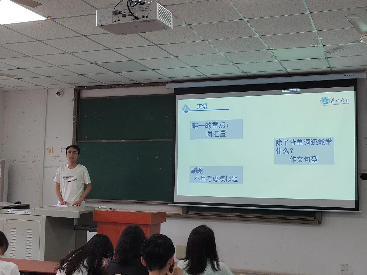(通讯员 张梦琪)为助力色情影片 20级本科生进一步明确考研目标、提高考研热情、增长考研知识,色情影片 于6月7日14:30在A-109教室举行了考研经验分享会。来自19级6位成功上岸的同学用自己的切身经历为大家提供了详细的信息收集、院校选择、复习计划、复试准备和压力调节等方面的分享和交流。分享会由20级辅导员郭霖老师主持,共近百名同学参会。
