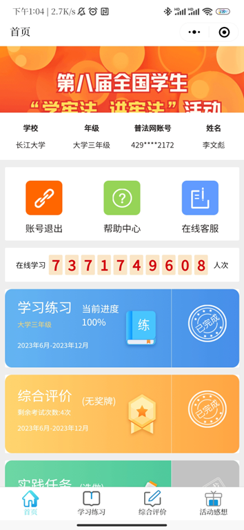 学院以班级为单位组织学生参加“宪法卫士”学习活动,开展线上“学宪法 讲宪法”普法答题,引导学生了解有关未成年人保护、爱国主义及教育法等诸多法律法规常识。通过网络视频学习法律专家讲解的宪法基本原则、制度和实践,并通过案例分析和互动问答等形式,加深学生对宪法的认识和理解。此外,学院还开展了《宪法伴我们成长》歌曲传唱活动,让学生在轻松愉悦的氛围中感受宪法的力量和价值。