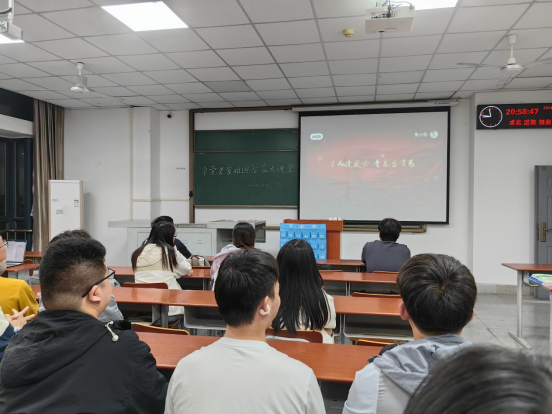 回顾历史征程,品味焕然一新,祝彦教授从新民主主义时代讲起,带领同学们重温了那段艰难的岁月,忆苦方能思甜,让同学们深刻感受到了新中国的光明可为;学习法规细则,铭记爱国于怀,马振清教授着手于法规,由理道情,望同学们做新时代忠诚的爱国主义者,心有大我,至诚报国;培养家国情怀,勇担时代重任,胡岩教授阐述了家国与青年的关系,呼吁同学们心怀家国,拼搏实干,为祖国步有为之青云。