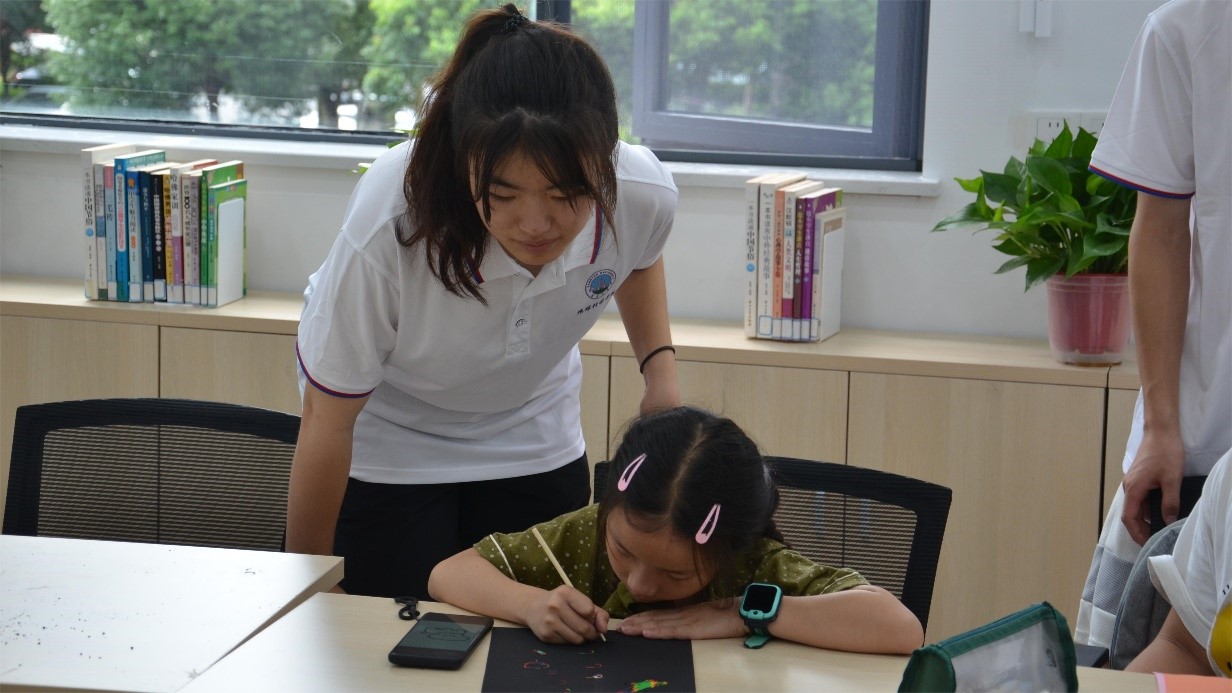 “这道题听懂了吗,如果没听懂,姐姐可以再讲一遍。”“哥哥,这个英语单词怎么读?”高湖社区的小会议室里,学习气氛浓列,队员们正在为年龄较大有学习任务的孩子进行一对一的学业辅导。每个孩子指导完毕后,队员们还会跟孩子们约定好明天的学习计划,根据每个孩子的作业完成情况及时调整辅导方案。