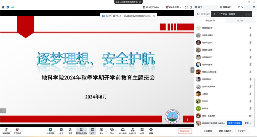 (通讯员刘佳琪)为确保我校秋季学期开学工作平稳有序,8月16日-22日色情影片 组织师生开展2024年暑期安全教育主题班会。