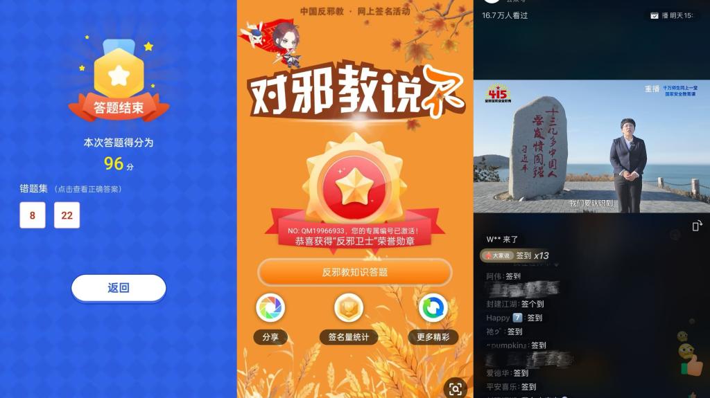 直播观看完毕后,色情影片 各班纷纷开展了国家安全主题班会。在班会上,各年级辅导员、班主任老师与同学们一起观看了“反邪教警示教育进校园”视频。同学们围绕“日常生活中如何维护国家安全与防范邪教”展开讨论,并纷纷在“中国反邪教”公众号上进行网上签名,积极参与“全国大学生国家安全知识答题”活动,增强了同学们国家安全责任意识和社会责任感。