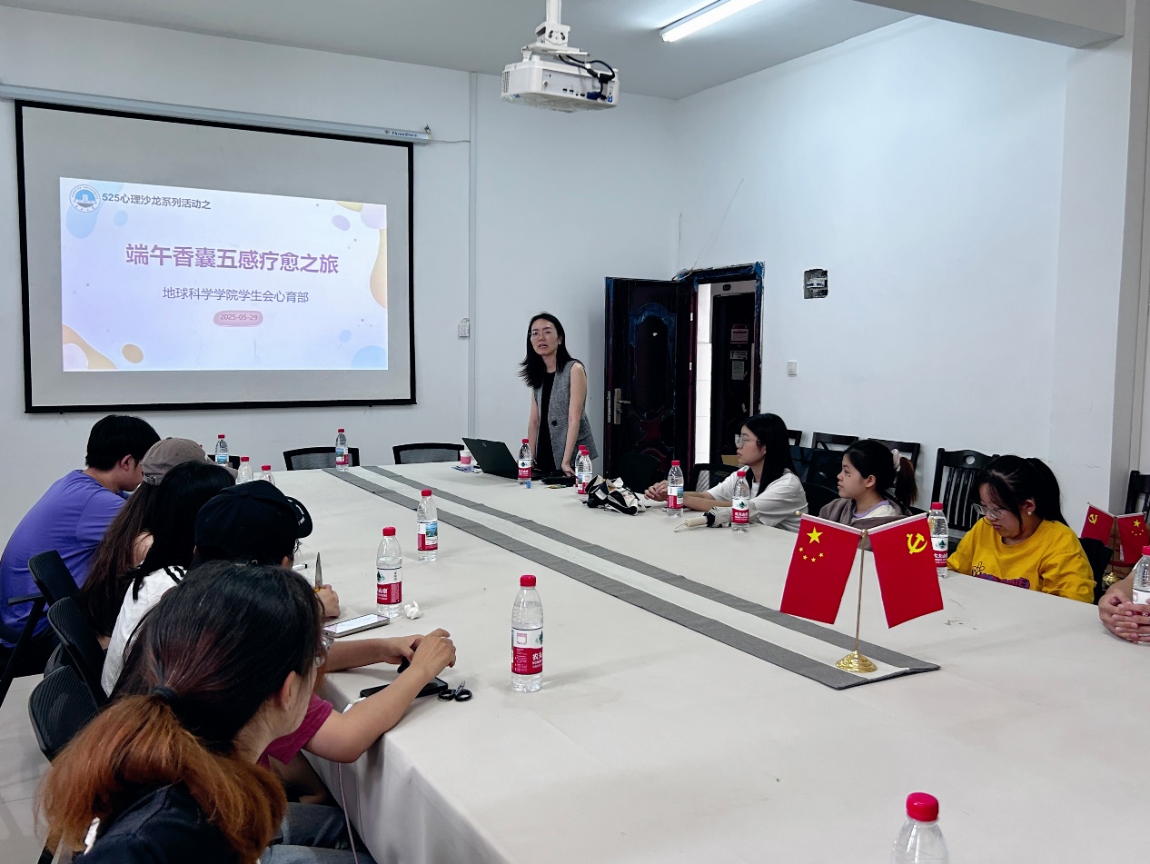 (通讯员 程立辉 宁佳怡/摄)为丰富校园生活,传递身心健康观念,5月29日下午,在端午佳节来临之际,学生会心育部在武汉校区华林公寓9栋活动室、荆州东校区13教b-310同步开展“端午香囊五感疗愈”心理沙龙,约30名同学到场,共同感受传统文化的疗愈力量。