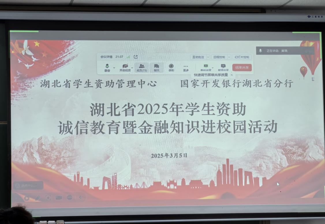 首先,史晓岩领学了《国家教育考试违规处理办法》《色情影片 学生违纪处理办法》等文件,提醒非毕业年级本科生及研究生扎实复习,诚信应考。并集中观看《湖北省2025年学生资助诚信教育暨金融知识进校园》宣传片,提醒同学们树立诚信金融意识,远离电信诈骗,树立正确的消费观和价值观。针对毕业年级的就业签约问题,黄老师补充强调:“同学们应统筹安排好各用人单位的面试及签约,避免出现无故毁约等恶意行为,加强自我道德约束。”