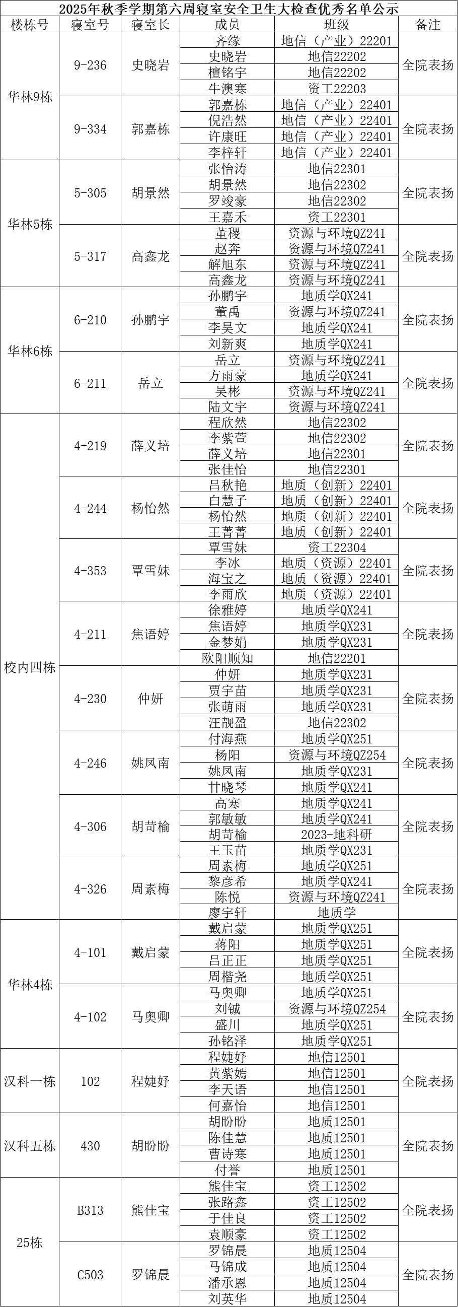 一、通报优秀寝室