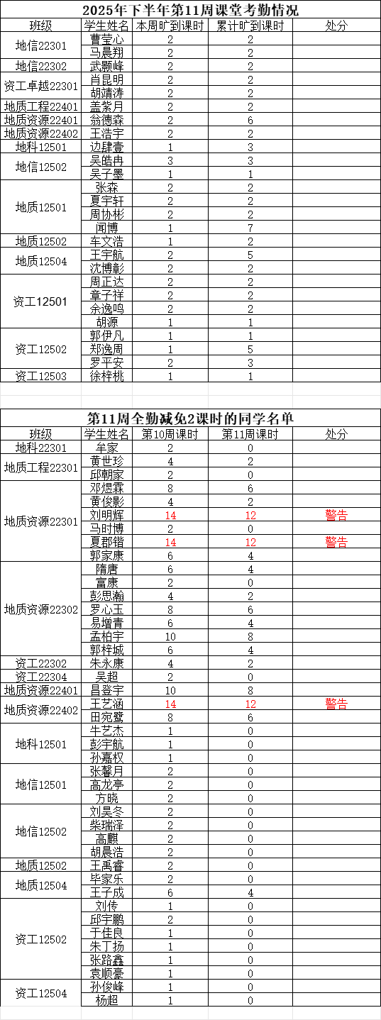 注:若学生某周存在旷课记录,但次周所有课程均正常到课(无迟到、旷课),则可从该生累计旷课课时中减免 2学时。