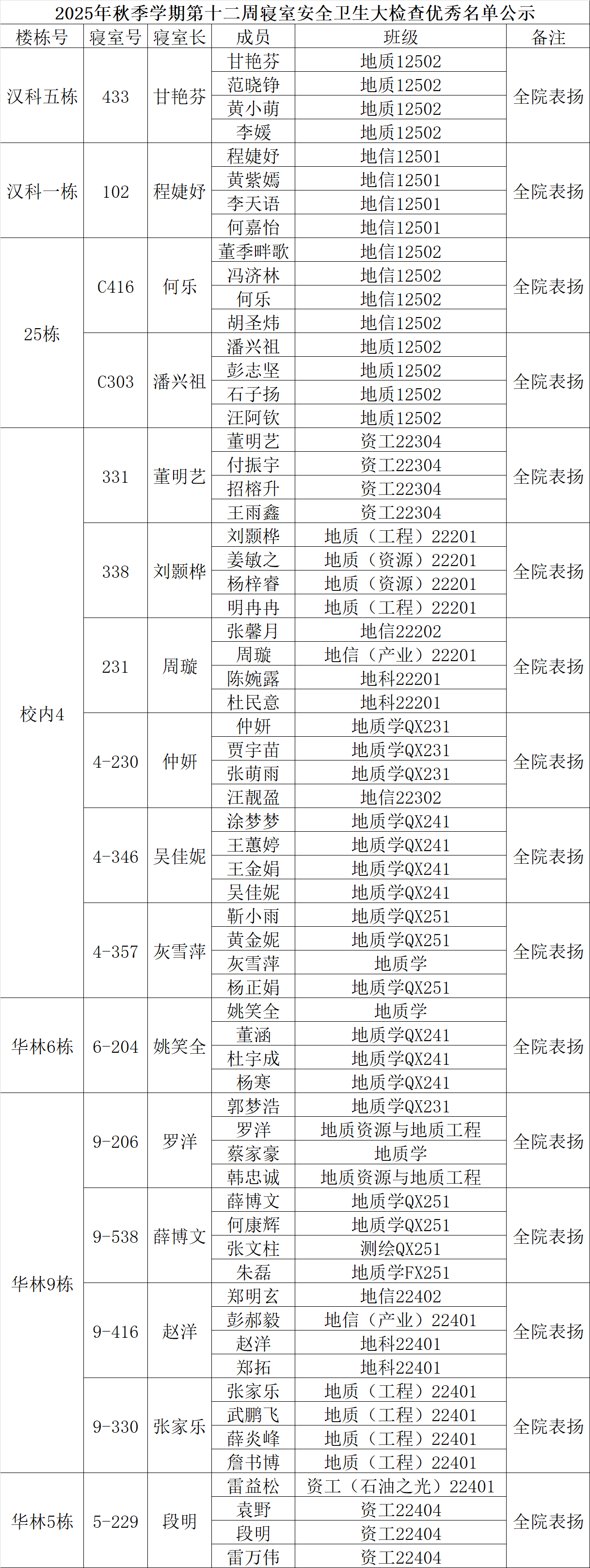 一、通报优秀寝室