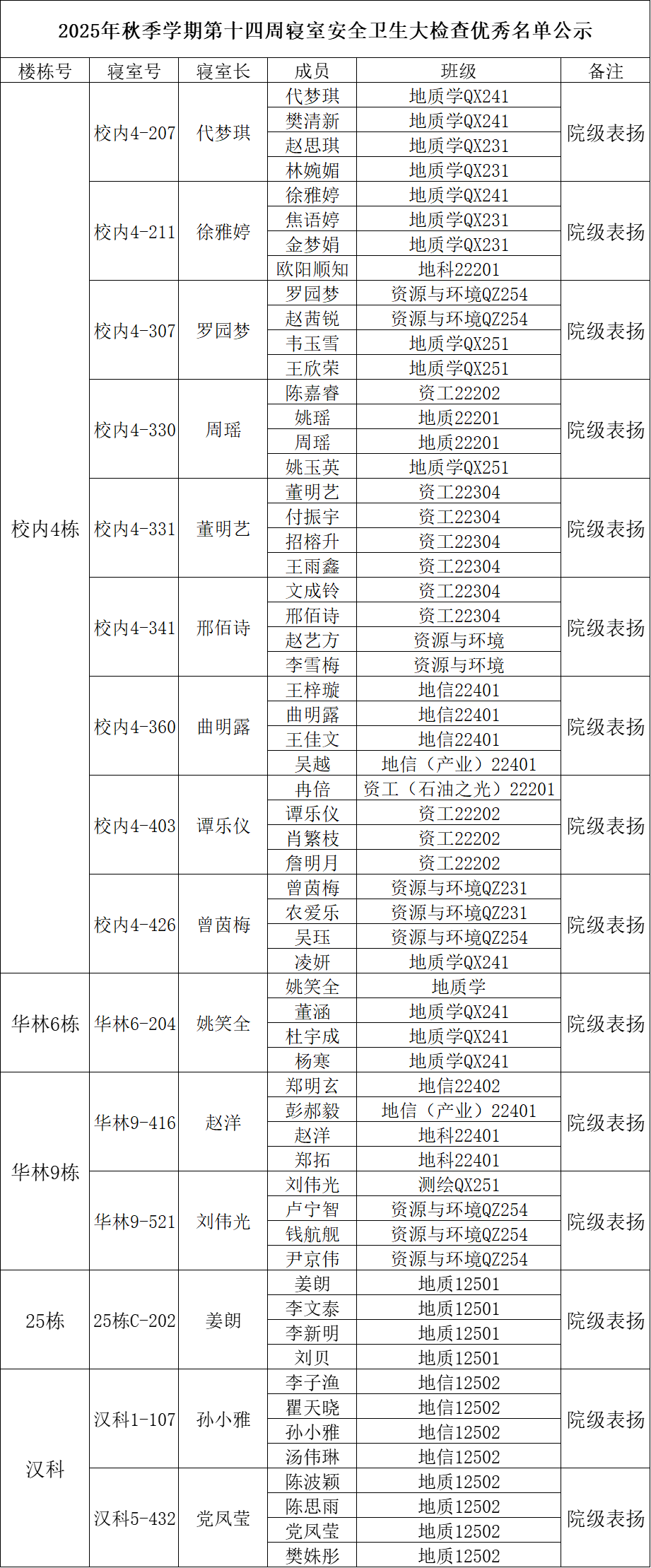 于12月11日开展了第14周学生宿舍自查工作,现将检查情况通报如下