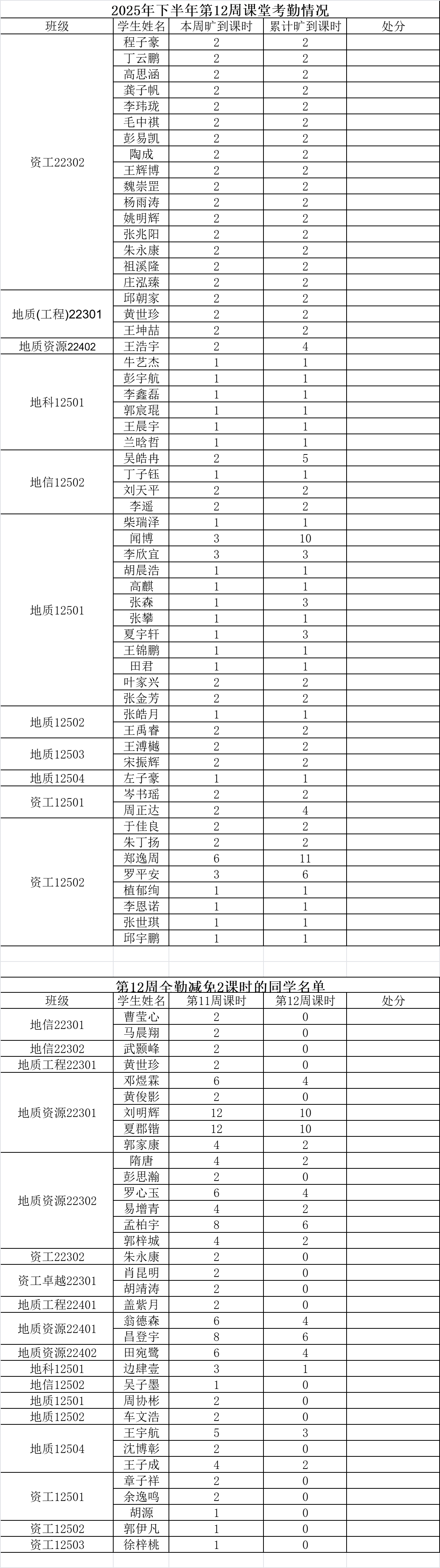 持续开展常态化课堂考勤工作。现将第十二周考勤情况通报如下: