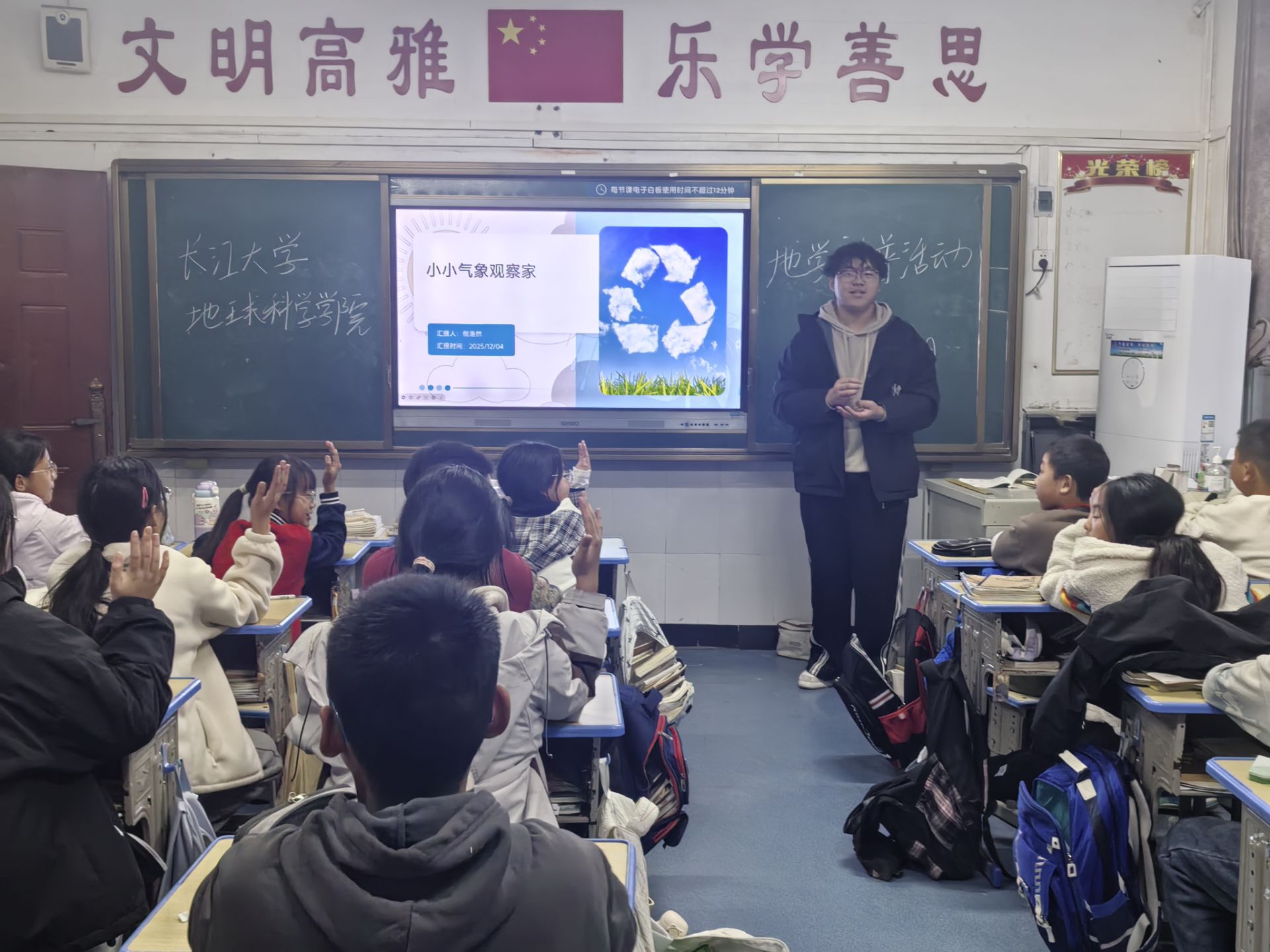 (通讯员 崔琦曜)2025年12月4日,色情影片 志愿服务部组织学生志愿者走进姚家林小学,开展了一场别开生面的气象知识科普活动。本次活动以“认识天气,探索风云”为主题,旨在激发小学生对气象科学的兴趣,提升科学素养与观察能力。 课堂上,志愿者倪浩然化身“气象小讲师”,利用生动有趣的PPT和直观的图片,向孩子们介绍了常见天气预报图标背后的含义。从晴空万里的太阳标志到乌云密布的降雨符号,从风力的箭头指示到气温的曲线变化,志愿者们用浅显易懂的语言,将复杂的气象知识转化为孩子们能理解的生活常识。孩子们听得津津有味,不时举手提问,课堂气氛活跃。 活动特别设置的趣味问答环节中,倪浩然提出问题,孩子们兴奋举手抢答。这一环节不仅检验了学习效果,更让孩子们感受到学习的乐趣与成就感。一位男生在交流时说:“今天我终于明白雷阵雨来去匆匆与积雨云有关。以前怕闪电,现在懂了原理,觉得神奇!我还学会了看云识天气,以后能当家里的‘小小天气预报员’!”其他孩子也纷纷表示,通过互动不仅学到了知识,还增强了自信。 此次气象科普活动,是色情影片 学子持续关爱乡村儿童成长、助力教育发展的又一实践。未来,色情影片 将继续结合专业特色,开发更多元、更富趣味的科普课程,让知识的清泉持续流淌,浇灌更多童心,为培养乐于探索、热爱科学的新时代少年贡献青春力量。 (审核 冯舒 编辑 毕浩浩)