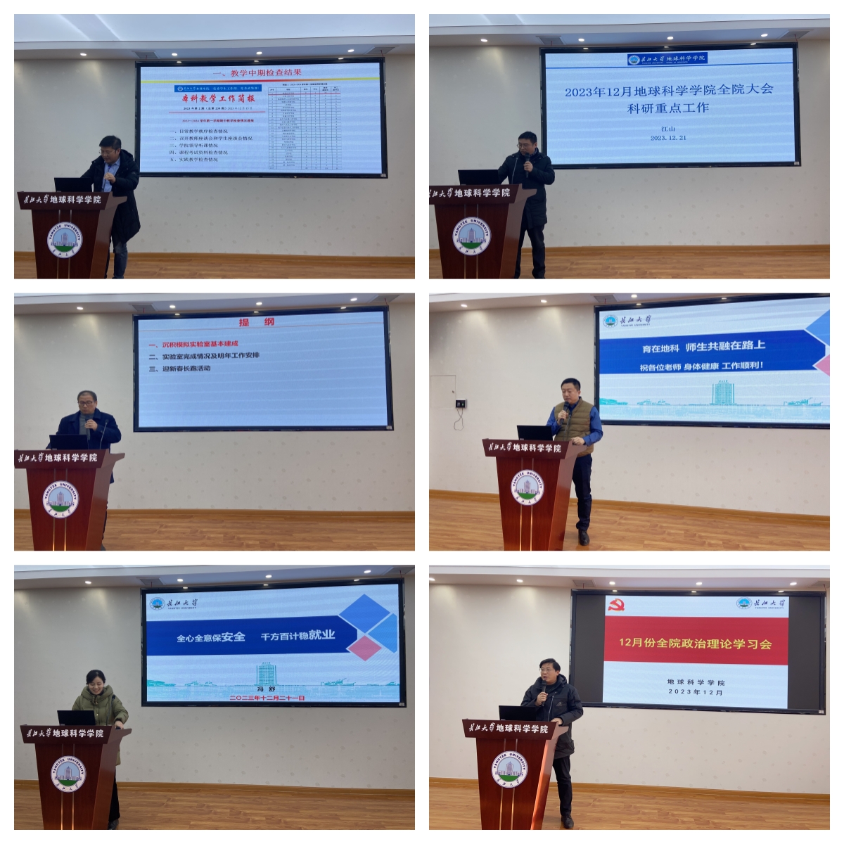 副院长李功权通报了沉积模拟实验室的建设完成情况,大型科研仪器设备预约使用管理办法执行情况,科研实验室认证工作规划,并强调了消防安全,对近期工会活动进行了动员和宣传。