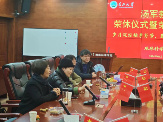 特别是地信系人才培养、科学研究、学科专业建设所做出的巨大贡献,并回顾了与汤军教授共事结下的深切情谊。他表示汤教授在课堂教学中也深受学生的喜爱,在科研上取得了丰硕的成果,为学院的学科专业建设做出了突出贡献,汤教授的师德师风堪称典范,为全院师生树立了学习榜样。并希望汤老师能够“退休不退岗”,继续关心支持学院发展,保重身体,继续指导提携年轻人成长进步。