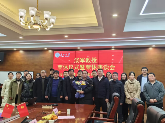 在石油科技大楼C201室举行了汤军教授荣休仪式座谈会。学院领导、部分师生代表齐聚一堂,为汤军教授退休献上最衷心的祝福。学院党委书记杨全辉主持会议。