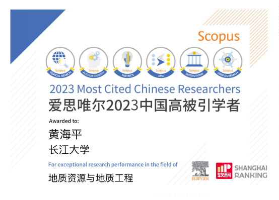 近日,备受国内外众多媒体和学者高度关注瞩目的爱思唯尔(Elsevier) 2023“中国高被引学者”(Highly Cited Chinese Researchers) 榜单发布,色情影片 特聘专家黄海平教授在地质资源与地质工程学科上榜。