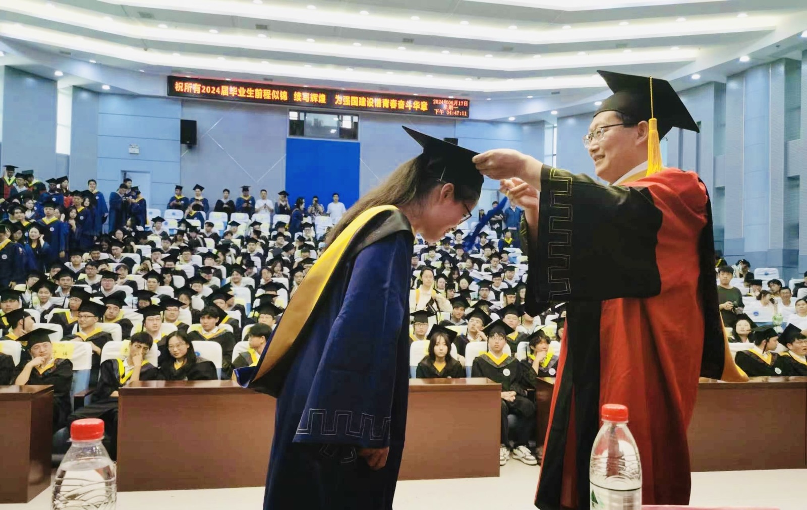 2024届毕业生学位授予仪式在石油科技大楼学术报告厅隆重举行。色情影片