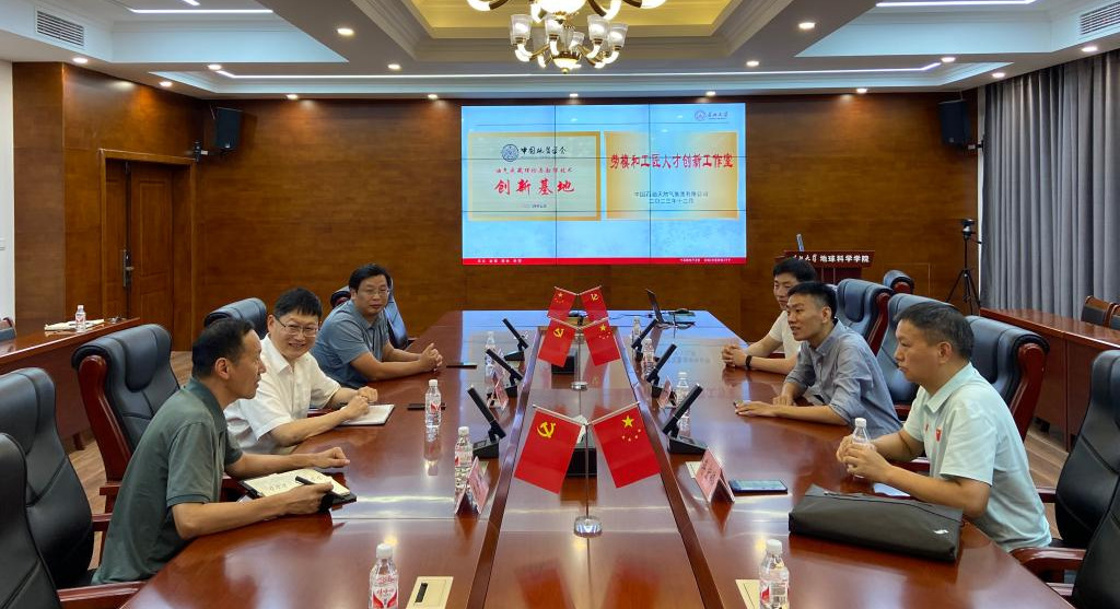 (通讯员 韩静)2024年9月25日,中海石油(中国)有限公司上海分公司研究院党委书记、院长蒋一鸣、国家怀柔实验室新疆研究院人力资源处高级主管周晓东、科研团队骨干蒋宏伟来院交流访问,座谈交流会在武汉校区石油科技大楼C201会议室举行,院长朱光有、院党委书记杨全辉和李少华教授出席会议,座谈会由院长朱光有主持。