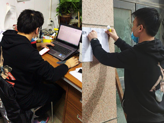 地质21603班的吴金铭秉着以实际行报效祖国的初心,全身心投入到防疫志愿服务工作中。