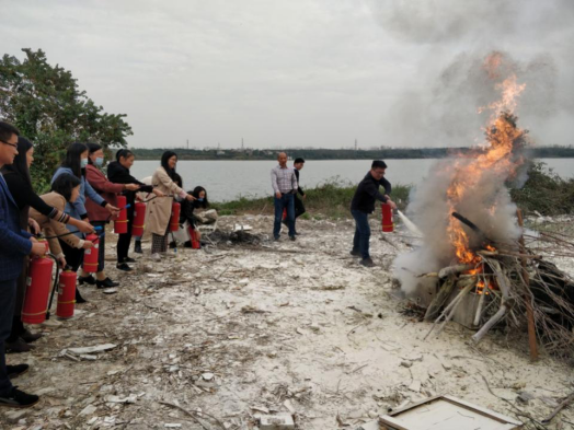教职工在后官湖畔参加了消防知识集中学习以及消防灭火演练。