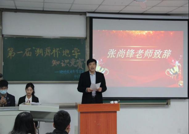 很快比赛进入尾声,统计分数间隙,教师代表张尚锋教授致辞。张教授以“大爱铸就自我腾飞之路”为主题,引导同学们要胸怀大爱,爱国家、爱地球,并勉励在座学子迈好大学专业学习第一步,脚踏实地,勤奋刻苦,成为地科学子的骄傲。同学们深受鼓舞,一阵阵掌声久久地回荡在教室之中。