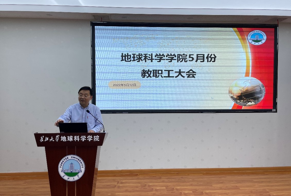 自建院以来,非常重视教学工作和师德师风的建设。他要求,学院要做好新进教师的教学培训工作,各系部、课题组在教学研讨中形成的教学规范要严格落实,每一位教师都要恪守教学底线,遵守教学规范,爱岗敬业。胡院长还对涉及师德师风的系列法律法规、文件规定的学习、违背师德师风的典型案例等做了强调说明,要求全院教师认真学、系统学、深入学,要内化于心,外化于行,潜心教书育人,做立德树人的模范。对于即将召开的第五届国际古地理学会议,他号召学院教师积极参会,利用国际学术平台多交流学习,提升个人学术水平;要求参会老师用心准备报告,工作人员认真落实各项筹备工作,全院团结一心,共同努力把第五届国家古地理学会议举办成一次高水平的学术盛会。