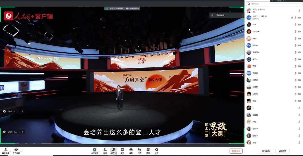 全体师生准时收看同上一堂“为国攀登”思政大课,创新理论学习小组成员、主要学生干部、学生党员、团员骨干、大一学生通过线上、线下结合的方式进行集中观看。