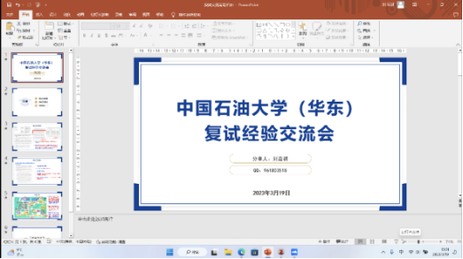 交流会中,郑娜重点分享了考研复试注意事项,详细讲解了关于考研复试的准备、复试的环节构成、面试的注意事项等方面。她说:“很荣幸能和学弟学妹们分享一些自己的建议,其实考研复试更加考验学生的全方面能力,希望自己的分享能对即将参加复试的学弟学妹有所帮助!”
