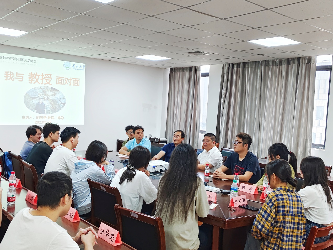 于石油科技大楼C306会议室举行地科院导师组系列活动之“我与教授面对面”座谈会。会议由胡忠贵教授主讲,党委副书记冯舒,班主任李涛老师,学工办辅导员张严、乔宇及地质(资源)22001班全体学生参会。