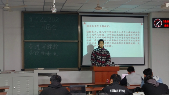 各团支部开展了11月主题教育实践活动,各年级辅导员与高年级团员骨干每人对接一个团支部,与大家一起学习、交流、讨论。本月的示范团支部是资工22302团支部,由团支书肖昆明同学主讲,资工22302班全体学生参与。