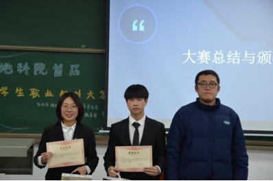 “大学生职业生涯规划大赛”决赛。油工学院研究生辅导员陈金建,油工学院23级辅导员周雨薇,地科学院辅导员乔宇三位老师担任评委。