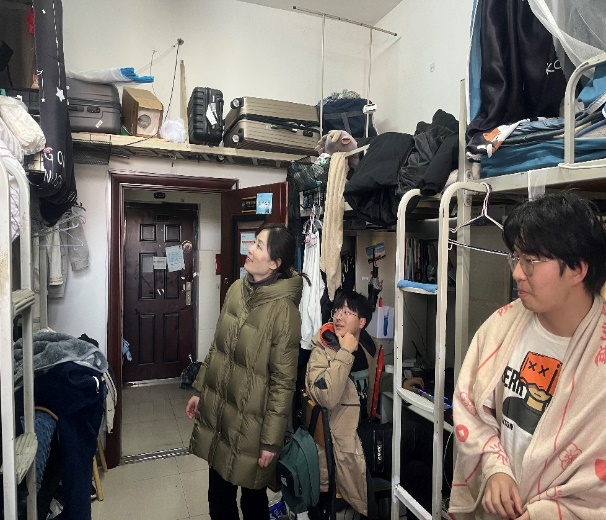 党委副书记冯舒带队,组织全体辅导员、班主任、学生党员干部及学生楼层长进行宿舍安全隐患排查工作。检查人员深入宿舍内部,针对宿舍用电安全、违规大功率电器、私拉(接)电线及电动滑板车进楼道充电等方面进行了重点检查,并对同学们开展宿舍消防安全隐患教育,一对一仔细耐心地指出存在的问题,提出整改意见;针对楼道公共消防安全空间,重点检查了每栋楼层的消防设施,查看消防设施有无破损、年久失等问题,做好问题记录并报备后勤保障处,修确保排查无死角,细节无隐患。