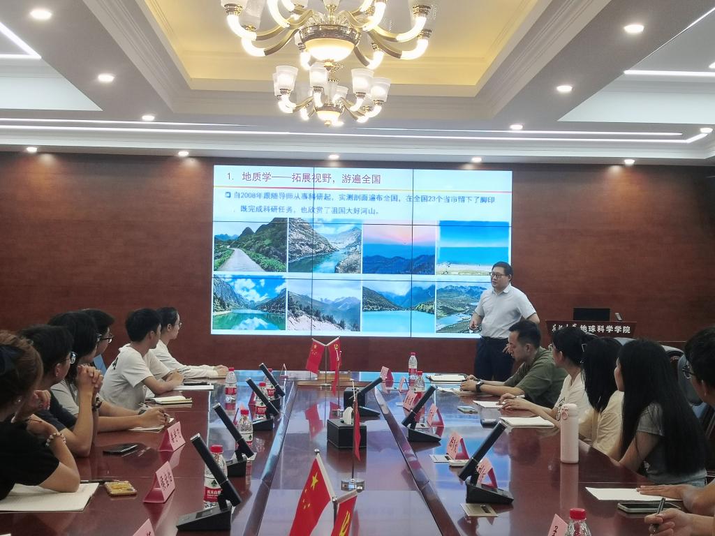 黄云飞老师首先讲述了自己的求学经历,介绍了个人在教学、科研、社会工作方面的主要成果,然后为大家讲解了古生物地史学和二叠纪-三叠纪生物演变的基本情况。他谈到:“我们通过开展地质历史时期的实例研究,服务生态文明建设,为建设美丽中国贡献一份力量。同学们在专业知识时,也要做到知行合一。学习地质知识时,要做到看山不仅仅是山,看水不仅仅是水。”此外,黄老师还强调:“大家要培养持续学习英语的习惯,这对于评奖评优、求职就业帮助很大”。黄老师还建议大家在本科期间要主动联系学院导师及班主任,积极参加科研训练、大创项目及“挑战杯”。与此同时,他提醒大家应提前谋划考研,明确下一个学业目标。