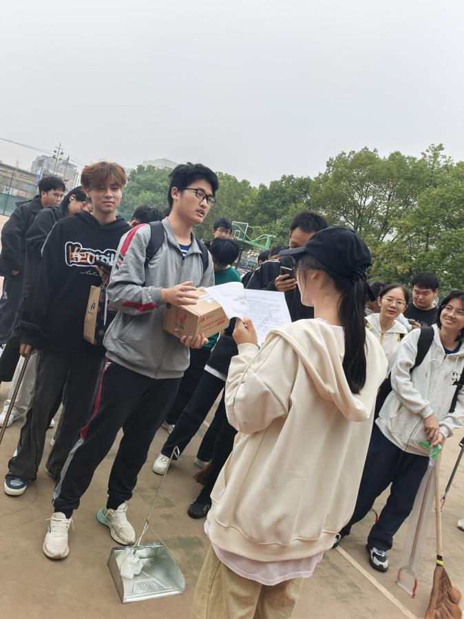 地质12401班的同学在东校区西一门篮球场附近开展了一场别开生面的劳动教育活动。