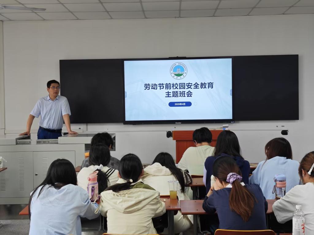 会后各班班委在班级组织安全教育班会,传达学校“五一”假期安全提示,做好安全教育。学院领导带队检查宿舍、实验室、自习室等场所,排查安全隐患。