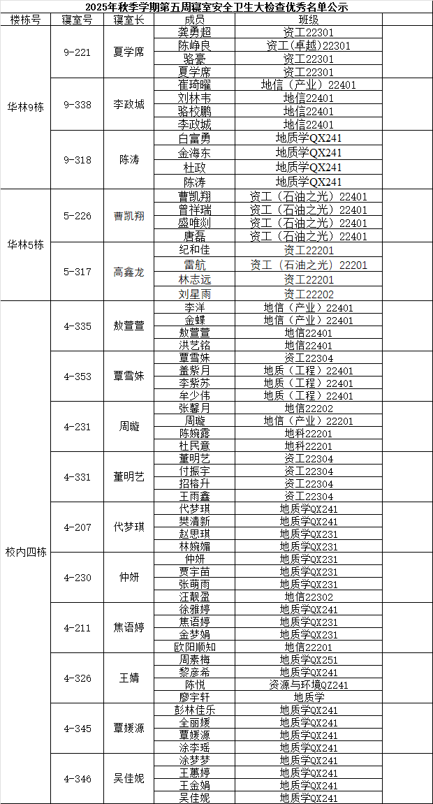 于10月9日开展了第5周学生宿舍自查工作,现将检查情况通报如下