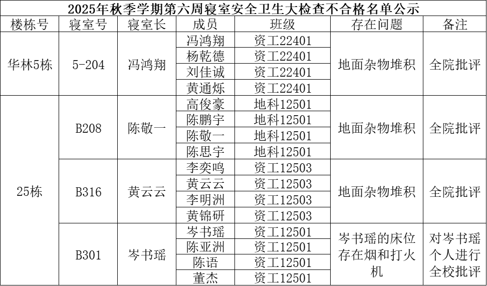 于10月16日开展了第6周学生宿舍自查工作,现将检查情况通报如下