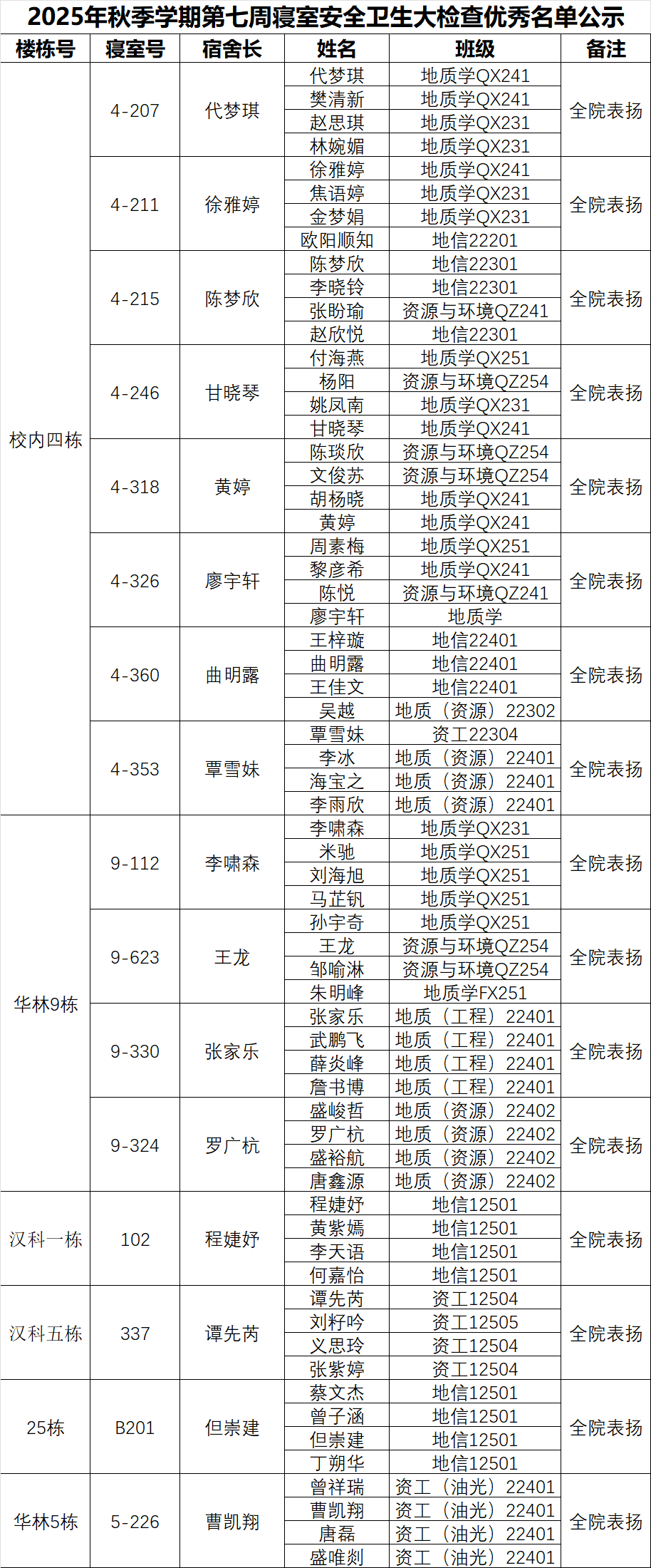 一、通报优秀寝室