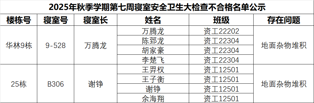 于10月23日开展了第7周学生宿舍自查工作,现将检查情况通报如下