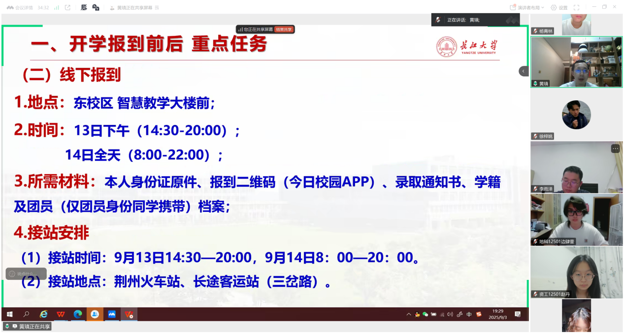 扎实推进安全教育。按时完成开学前主题班会,家长线上同步参与,加强网络文明建设教育,告知秋季开学教育教学相关事项。同时,细致核查休学复学学生情况、明确补考学生要求、核验外宿学生信息并健全管理机制,对心理重点关注学生实施 “一生一策” 并联动家长,确保学生返校及开学安全。