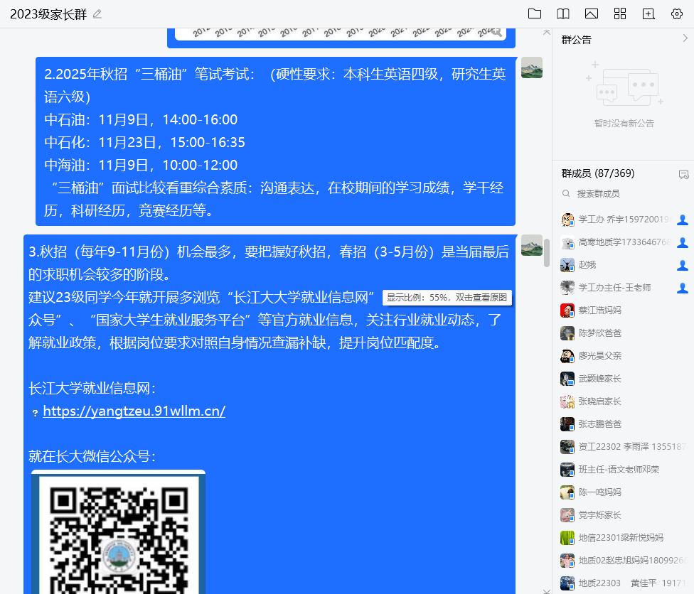 在交流答疑环节,对家长们比较聚焦的考研与就业问题,两位老师均一对一进行了详细回答。会后,面向全体家长发放了色情影片