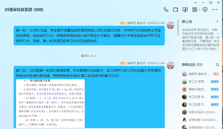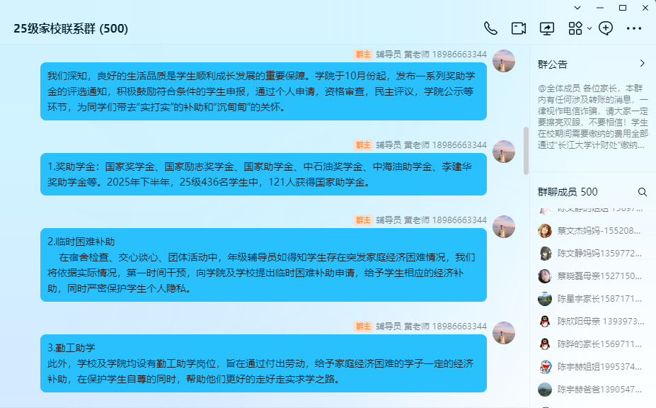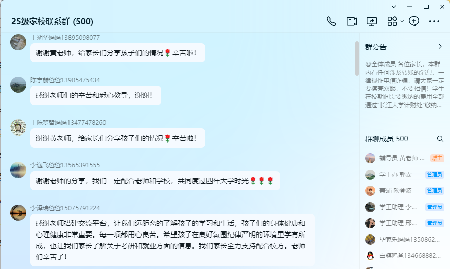 召开了2025级本科生线上家长会。会议由年级辅导员黄瑱主持,近500名学生家长参与活动。