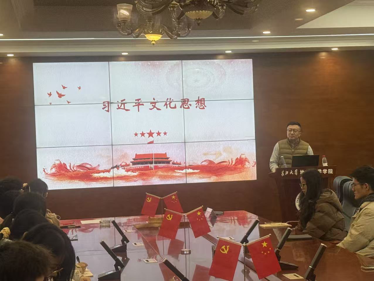 常务副院长吴楠在石油科技大楼C201会议室,为全体学生党员及研究生会成员讲授专题党课,深入解读习近平文化思想的生成逻辑、丰富内涵与理论特质。